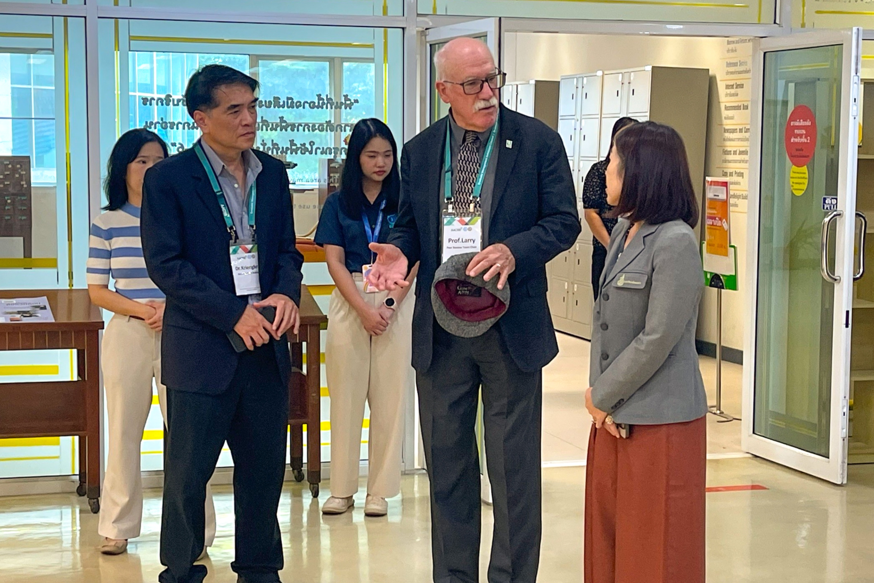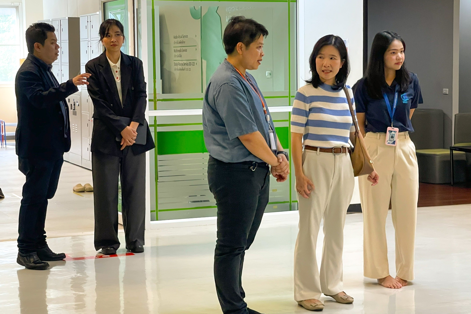 วันที่ 16 กันยายน 2568 Professor De. Lawrence C. Rose ประธานคณะกรรมการประเมินคุณภาพ AACSB พร้อมด้วย ดร.สุกิจ ขอเชื้อกลาง รองคณบดีฝ่ายแผนและประกันคุณภาพการศึกษา, ดร.ภัคจิรา นักบรรเลง รองคณบดีฝ่ายบริการวิชาการและวิเทศสัมพันธ์, ผศ.ดร.กฤชชา ยาวิเศษ ผู้ช่วยคณบดีฝ่ายยุทธศาสตร์, นางจิระประภา ศรีปัตตา ผู้อำนวยการกองพัฒนาคุณภาพการศึกษา และบุคลากรงานประกันคุณภาพการศึกษา เข้าร่วมเตรียมความพร้อมสำหรับการประเมินคุณภาพการศึกษา AACSB ของคณะบริหารธุรกิจฯ และในส่วนของการเยี่ยมชมสิ่งสนับสนุนระดับมหาวิทยาลัย ณ สำนักหอสมุด โดยมี ผศ.ดร.มาร์ฎา ชยทัตโต ผู้อำนวยการสำนักหอสมุด พร้อมทีมผู้บริหารและบุคลากร ให้การต้อนรับและร่วมนำเสนอสิ่งสนับสนุนการเรียนรู้และสิ่งอำนวยความสะดวกที่ให้บริการแก่นิสิตและบุคลากร ทั้งนี้ การเตรียมการดังกล่าวมีวัตถุประสงค์เพื่อรองรับการประเมินคุณภาพการศึกษา AACSB (Site visit) ซึ่งคาดว่าจะจัดขึ้นประมาณเดือนกรกฎาคม พ.ศ. 2569 โดยการประเมินตามเกณฑ์ดังกล่าวถือเป็นการยกระดับการดำเนินงานของคณะและหลักสูตรไปสู่มาตรฐานสากลอย่างต่อเนื่อง สอดคล้องกับนโยบายการบริหารของคณะบริหารธุรกิจ เศรษฐศาสตร์และการสื่อสาร