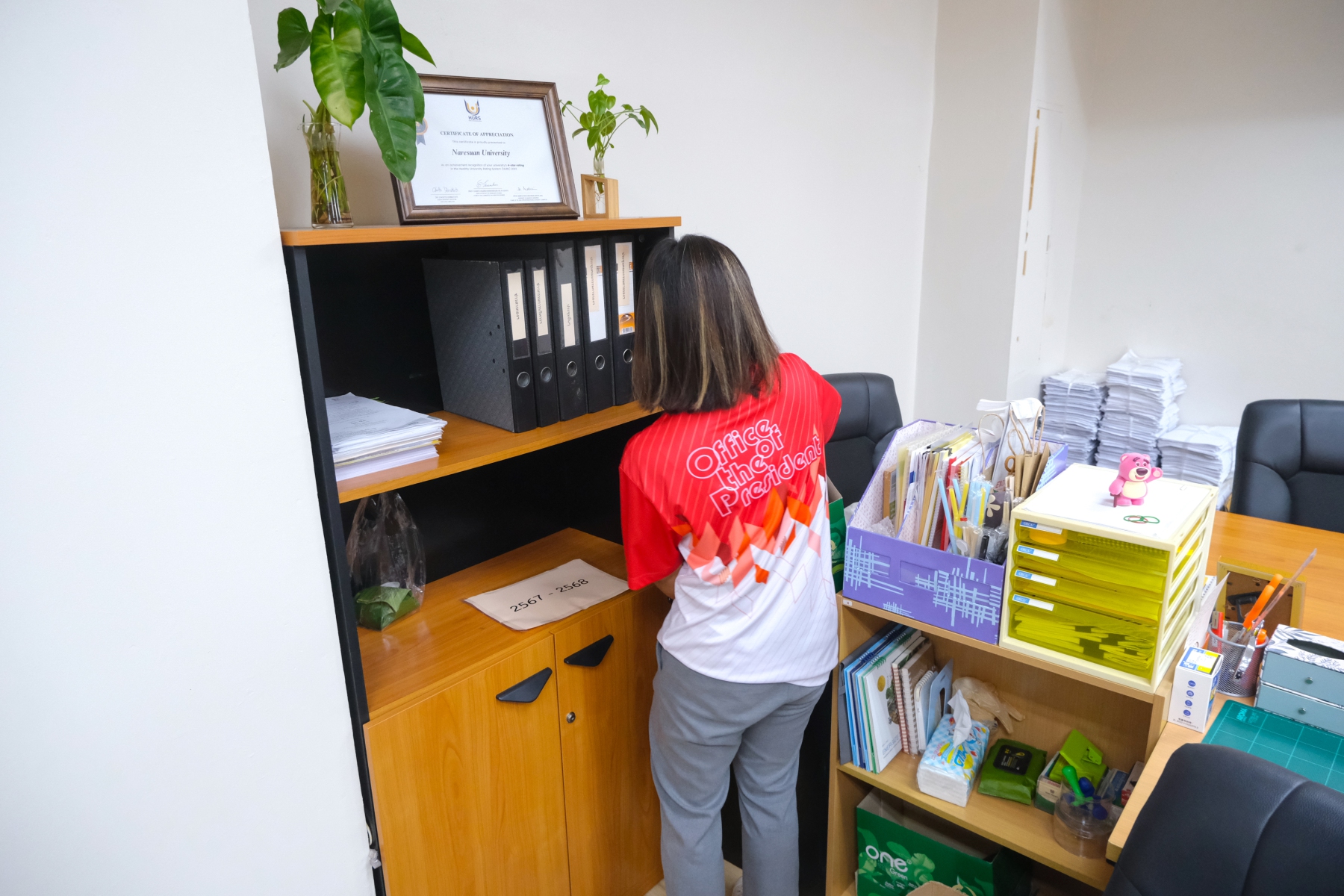วันที่ 26 กันยายน 2568 นางจิระประภา ศรีปัตตา ผู้อำนวยการกองพัฒนาคุณภาพการศึกษา ได้นำบุคลากรร่วมทำ กิจกรรม 5ส. เพื่อเสริมสร้างบรรยากาศการทำงานที่เป็นระเบียบและน่าอยู่ พร้อมทั้งส่งเสริมประสิทธิภาพการทำงาน โดยมีกิจกรรมตาม 5 ขั้นตอน ได้แก่ สะสาง (กำจัดสิ่งของที่ไม่จำเป็น), สะดวก (จัดเก็บของให้ง่ายต่อการหยิบใช้), สะอาด (ทำความสะอาดพื้นที่และอุปกรณ์), สุขลักษณะ (รักษามาตรฐานความสะอาดอย่างต่อเนื่อง) และ สร้างนิสัย (ปลูกฝังวินัยในการปฏิบัติ 5ส. อย่างยั่งยืน) โดยกิจกรรมครั้งนี้จัดขึ้น ณ สำนักงานกองพัฒนาคุณภาพการศึกษา อาคารมิ่งขวัญ ชั้น 2 มหาวิทยาลัยนเรศวร