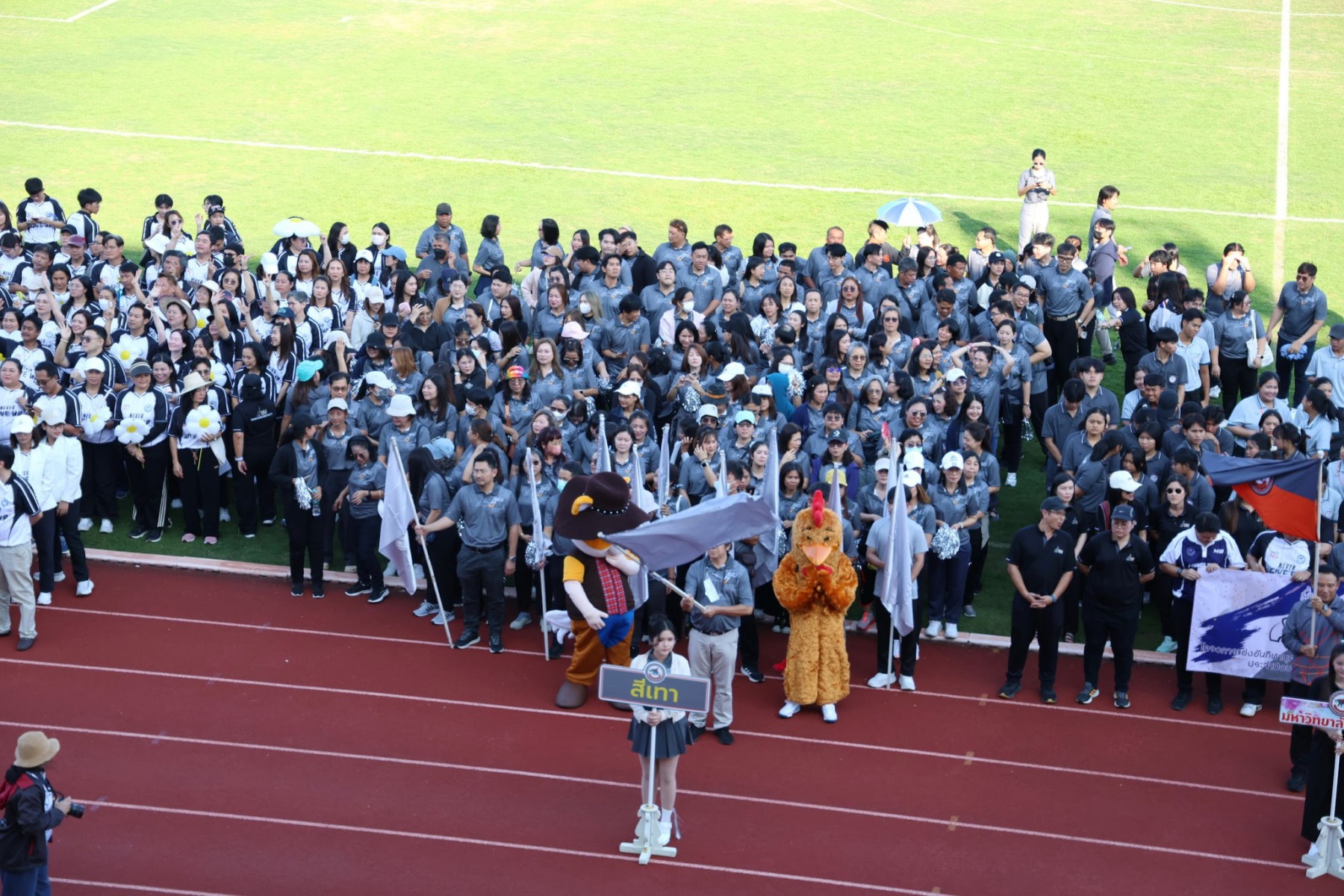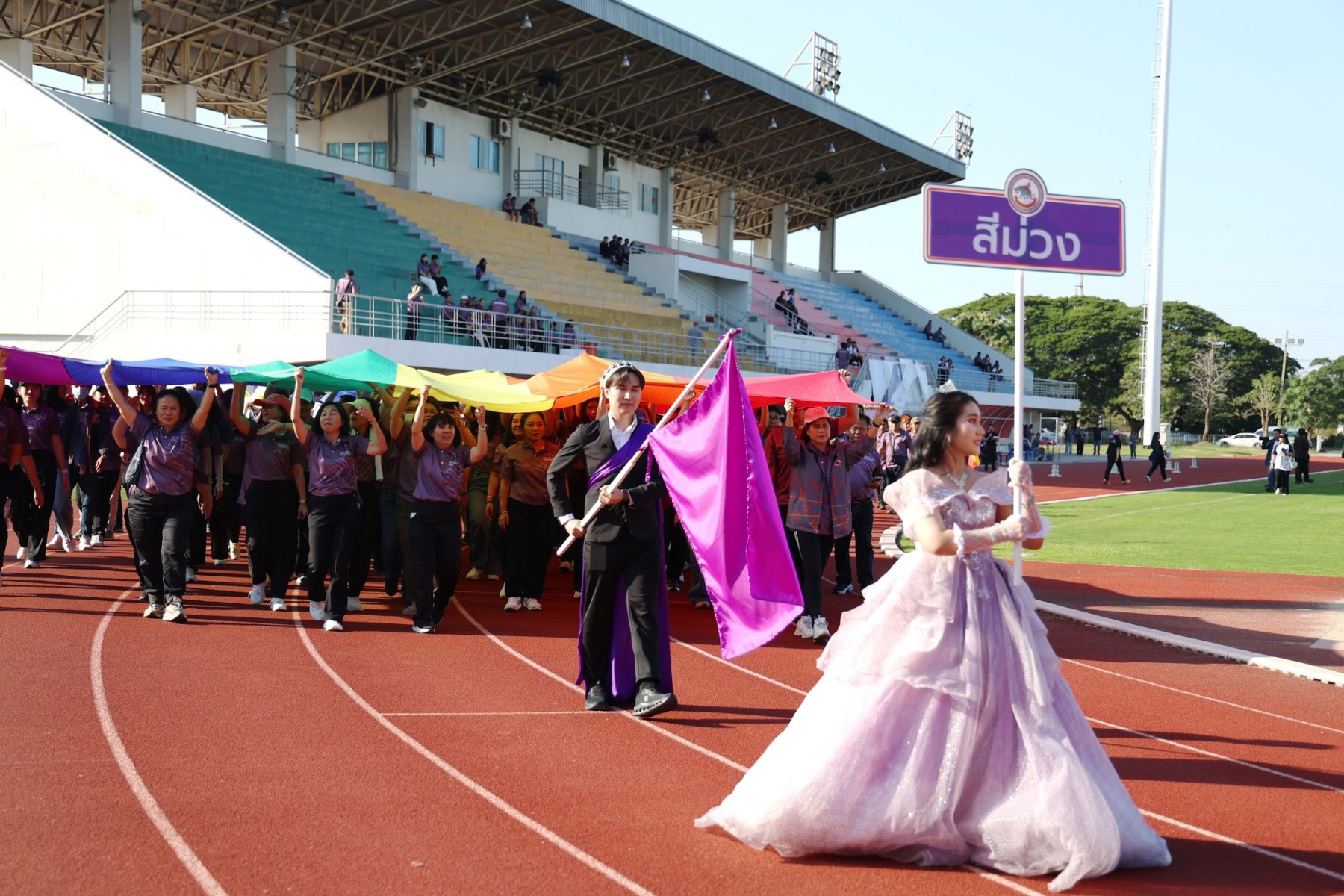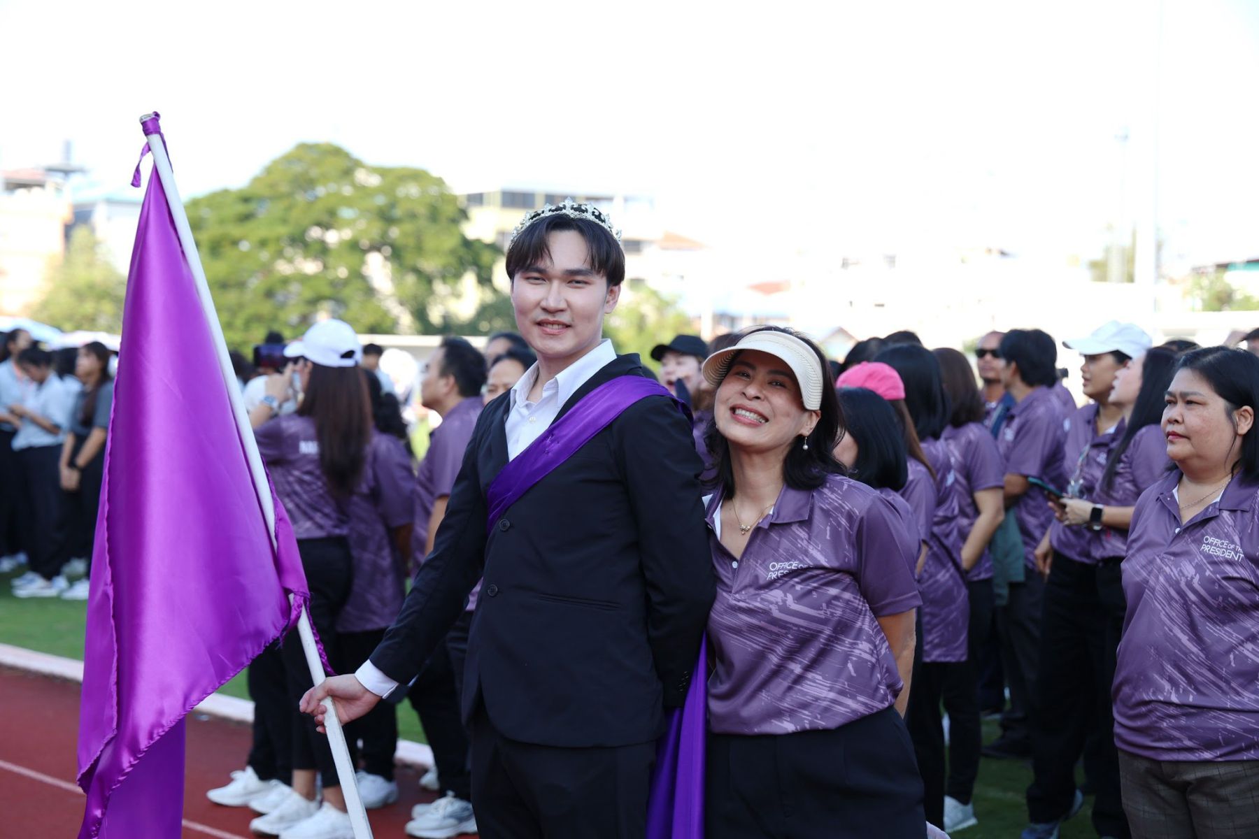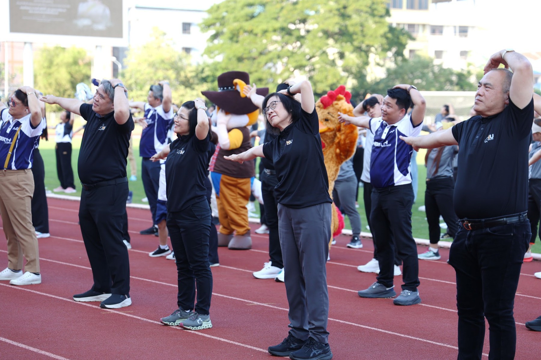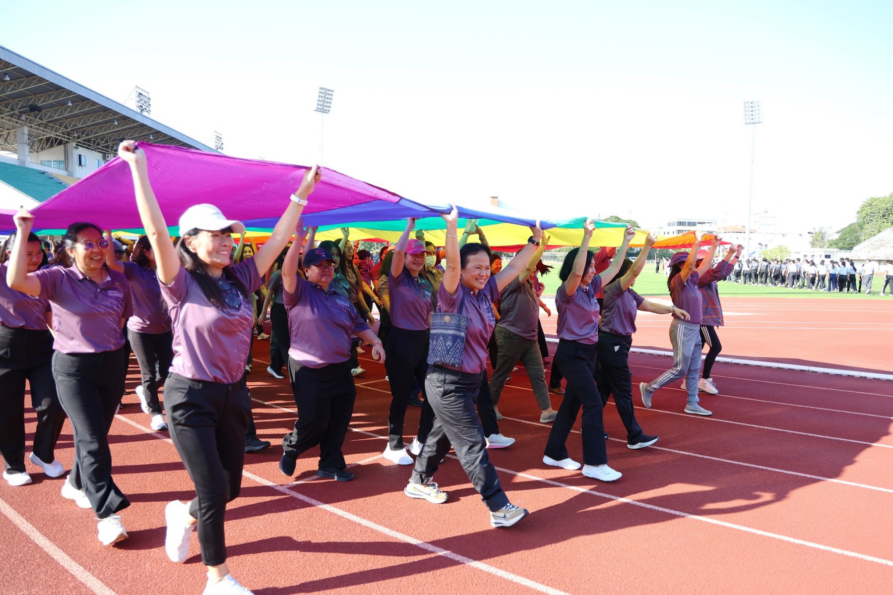 วันที่ 22 ธันวาคม 2568 นางจิระประภา ศรีปัตตา ผู้อำนวยการกองพัฒนาคุณภาพการศึกษา พร้อมด้วยบุคลากร เข้าร่วมพิธีเปิดการแข่งขันกีฬาบุคลากรภายในมหาวิทยาลัยนเรศวร ประจำปี 2569 (NU Sports 2026) โดยมี รองศาสตราจารย์ ดร.ศรินทร์ทิพย์ แทนธานี รักษาราชการแทนอธิการบดีมหาวิทยาลัยนเรศวร เป็นประธานในพิธี ร่วมกับคณะผู้บริหารมหาวิทยาลัย บรรยากาศงานเต็มไปด้วยความสนุกสนานและความสามัคคี โดยเริ่มต้นด้วยขบวนพาเหรดจากหน่วยงานต่าง ๆ ซึ่งแต่งกายตามสีประจำทีม โดยกองพัฒนาคุณภาพการศึกษามีบุคลากรเป็นตัวแทนถือธงนำขบวนพาเหรดสีม่วง ช่วยเสริมบรรยากาศให้คึกคักยิ่งขึ้น ก่อนเข้าสู่กิจกรรมเต้นแอโรบิกเพื่อส่งเสริมสุขภาพและสร้างความร่วมมือ พร้อมเสียงเชียร์จากทั้งสี่สี ได้แก่ สีม่วง สีขาว สีกรม และสีเทา ที่ช่วยเพิ่มสีสันให้กับงาน กิจกรรมครั้งนี้ไม่เพียงส่งเสริมสุขภาพกายใจเท่านั้น แต่ยังช่วยกระชับความสัมพันธ์ระหว่างบุคลากรในมหาวิทยาลัยให้แน่นแฟ้นยิ่งขึ้น โดยกิจกรรมจัดขึ้น ณ สนามฟุตบอล 1 มหาวิทยาลัยนเรศวร