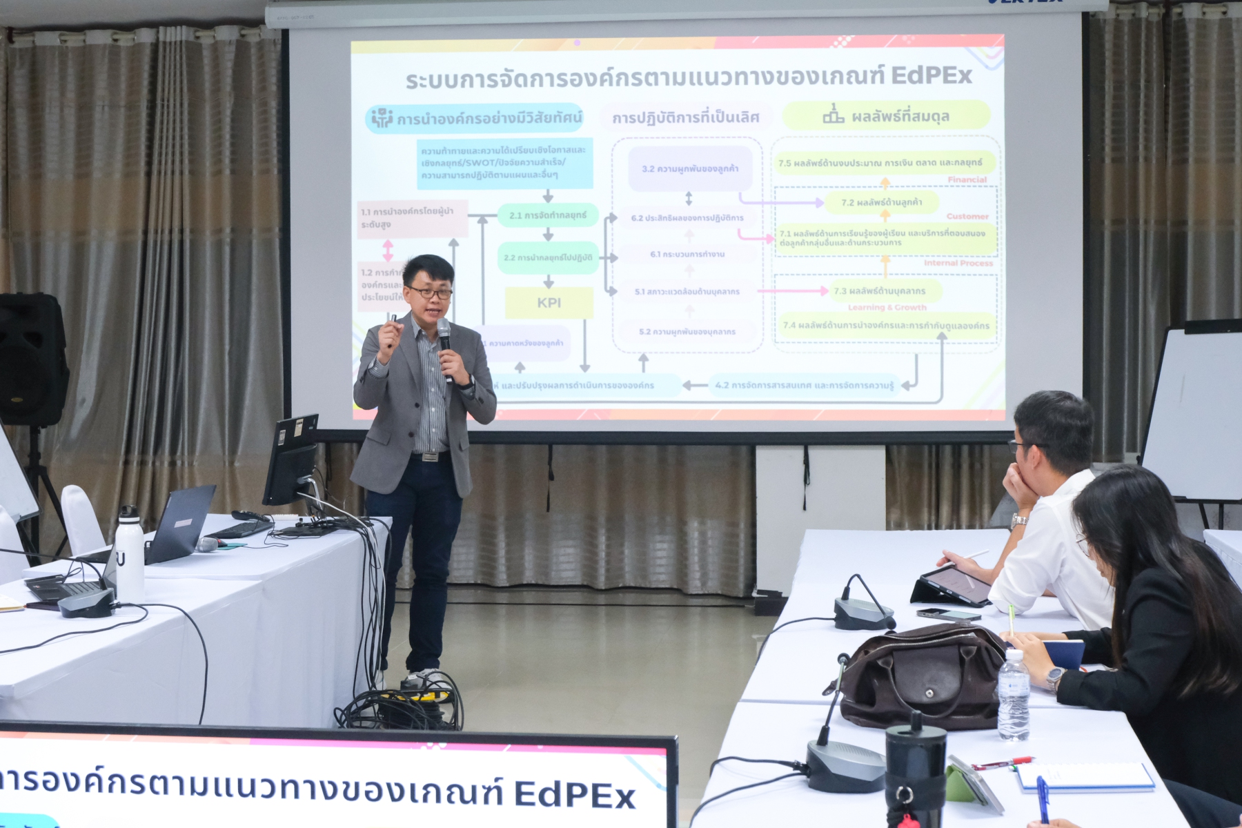 กองพัฒนาคุณภาพการศึกษา ร่วมแลกเปลี่ยนเรียนรู้ (KM) และถ่ายทอดประสบการณ์ EdPEx ในระดับหน่วยงานสนับสนุน กับกองกลาง