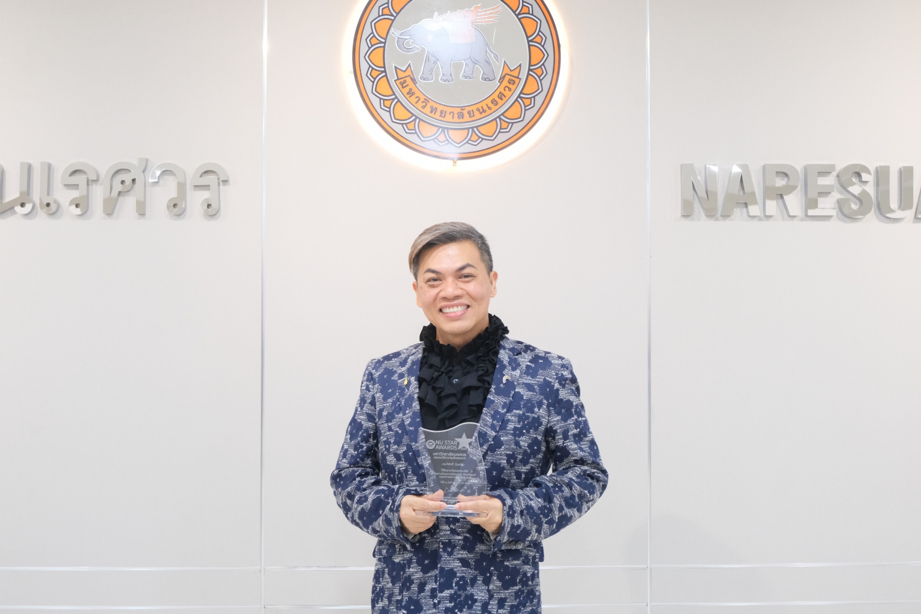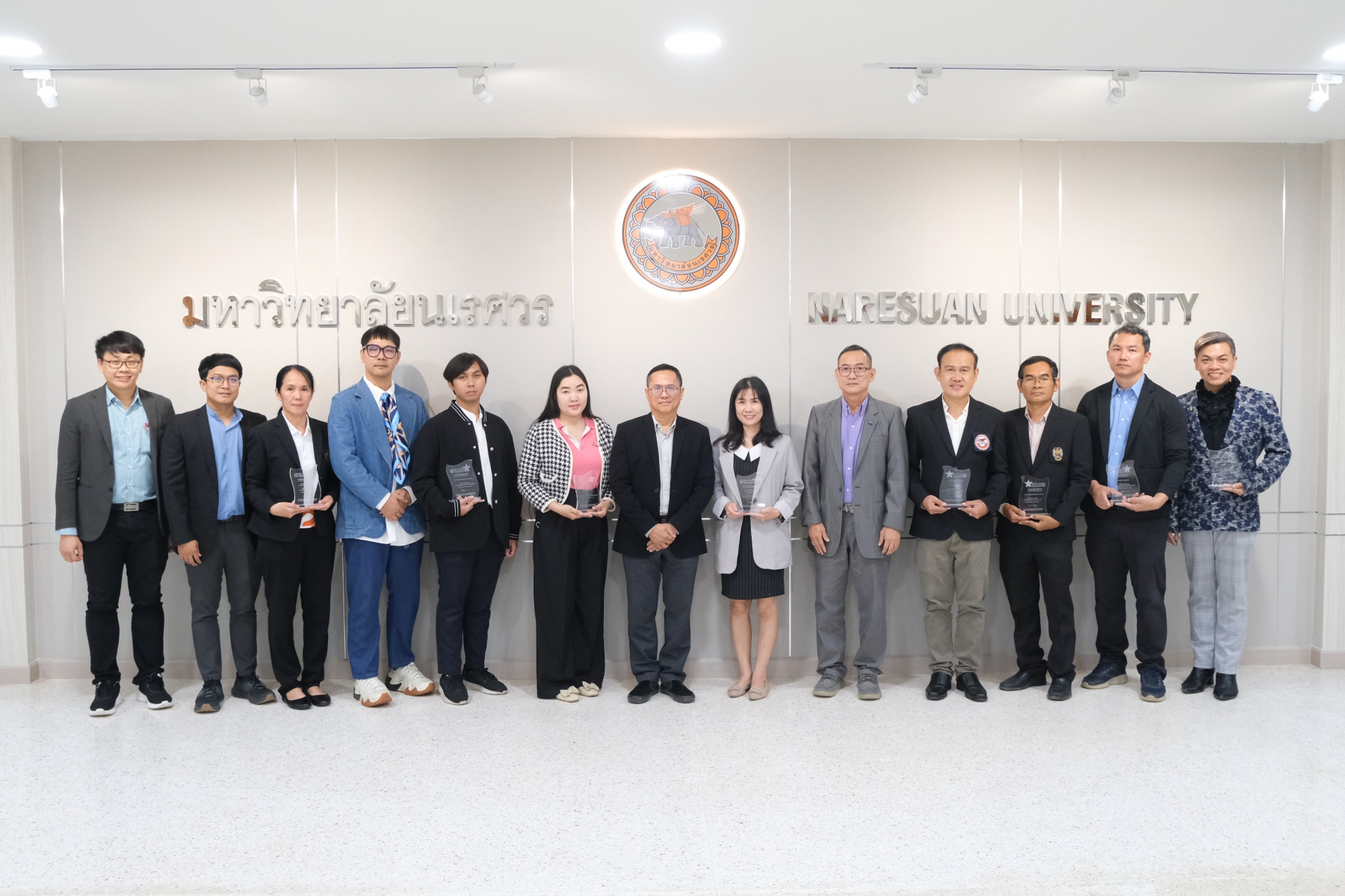 วันที่ 2 กันยายน 2568 รองศาสตราจารย์ ดร.ศรินทิพย์ แทนธานี รักษาราชการแทนอธิการบดีมหาวิทยาลัยนเรศวร ได้มอบโล่รางวัลในโครงการพัฒนามหาวิทยาลัยสู่ความยั่งยืน ภายใต้กิจกรรมการประกวดผลงานวิชาการเพื่อมุ่งสู่ความเป็นเลิศในระดับสากล “NU Star Awards 2025” ให้กับหน่วยงาน คณาจารย์ และบุคลากรสายสนับสนุนที่ส่งผลงานเข้าร่วมประกวดและมีผลงานโดดเด่น รวมทั้งสิ้น 9 ผลงาน โดยมีการถ่ายภาพร่วมกับผู้ได้รับรางวัลในแต่ละประเภทกิจกรรม พร้อมด้วยรองศาสตราจารย์ ดร.วัฒนา พัดเกตุ รองอธิการบดีฝ่ายวิชาการ และรองศาสตราจารย์ ดร.อรรถกร ทองทา ผู้ช่วยอธิการบดีฝ่ายวิชาการ ทั้งนี้ ผลงานที่ได้รับรางวัลจะได้รับการผลักดันสู่การประกวดในเวทีระดับอาเซียน THE Awards Asia 2026 ต่อไป โดยพิธีมอบโล่รางวัลจัดขึ้น ณ ห้องประชุม 310 ชั้น 3 อาคารสำนักงานอธิการบดี มหาวิทยาลัยนเรศวร